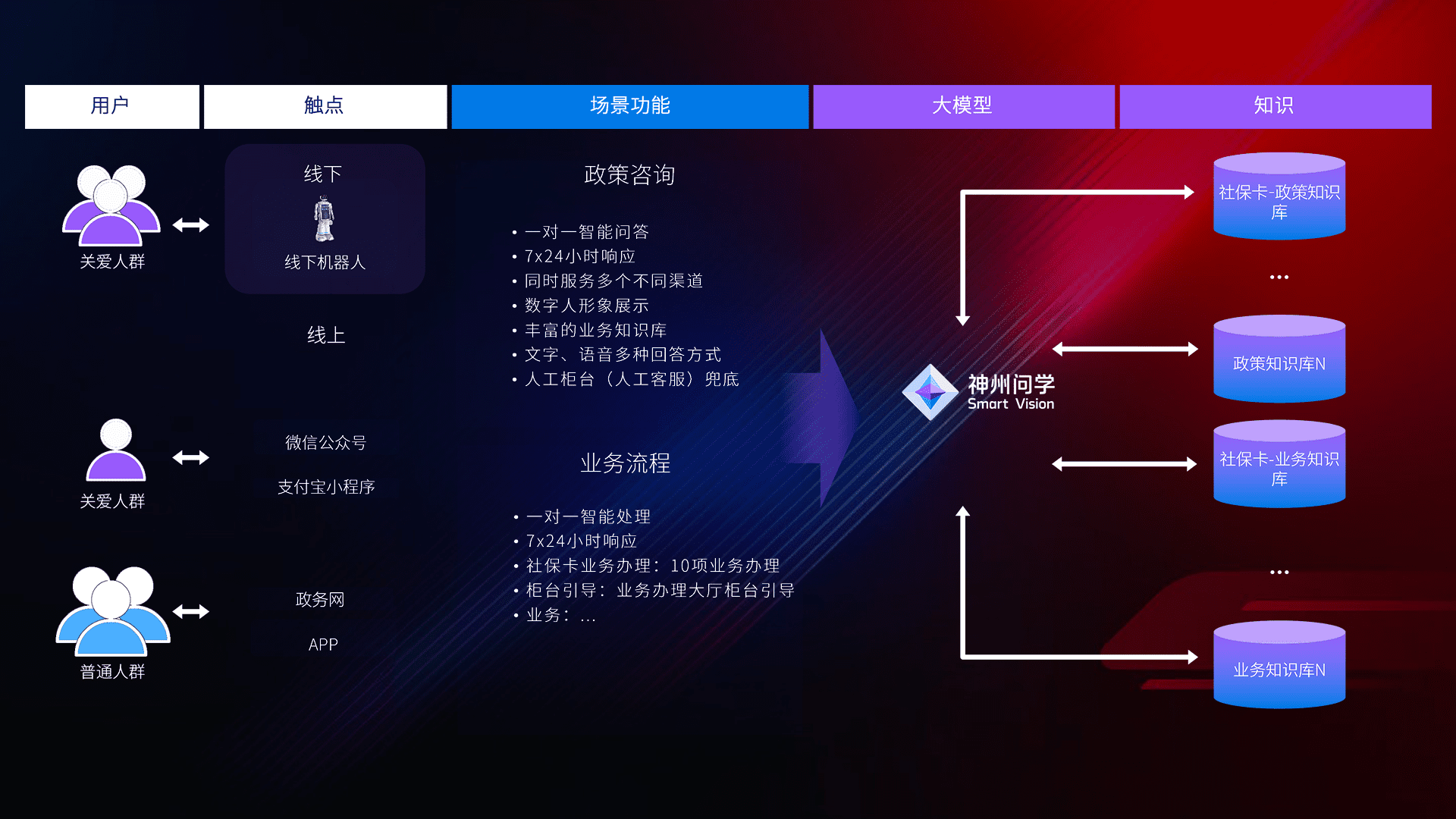 在服务大厅部署客服机器人,,在线上应用和小程序配置客服数字人,,,724小时为群众解答常规问题,,,,客服机器人无法处理的,,,,转现场人工处理。。